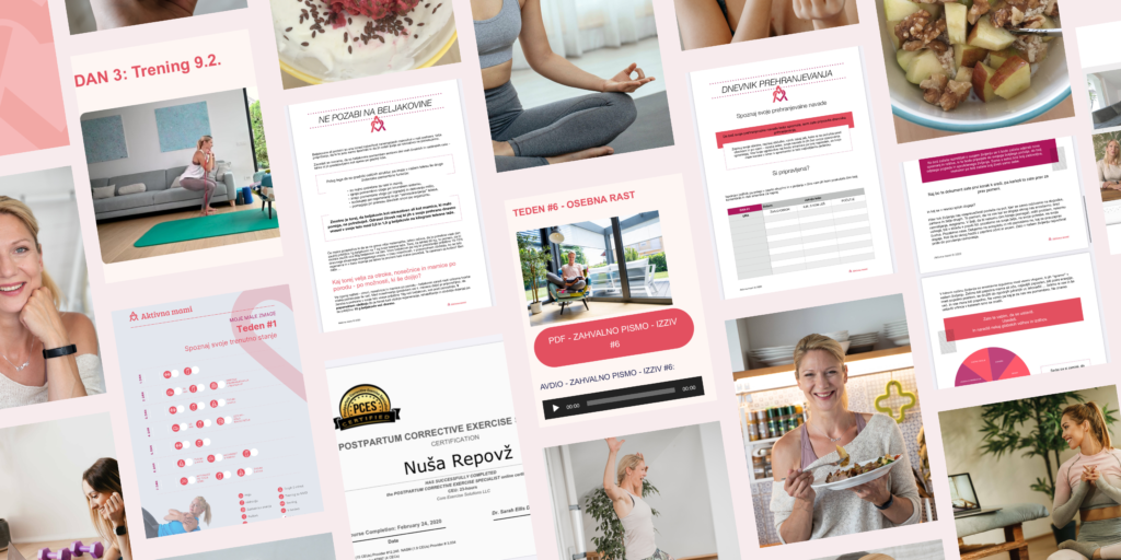 “Po porodu mi je res primanjkovalo tiste prave vadbe (ne samo sprehodi in polnočni trebušnjaki, ker mali ni spal). Od Nuše sem dobila točno to: vadbo, ki jo lahko dela vsaka mamica takrat, ko ima čas.”